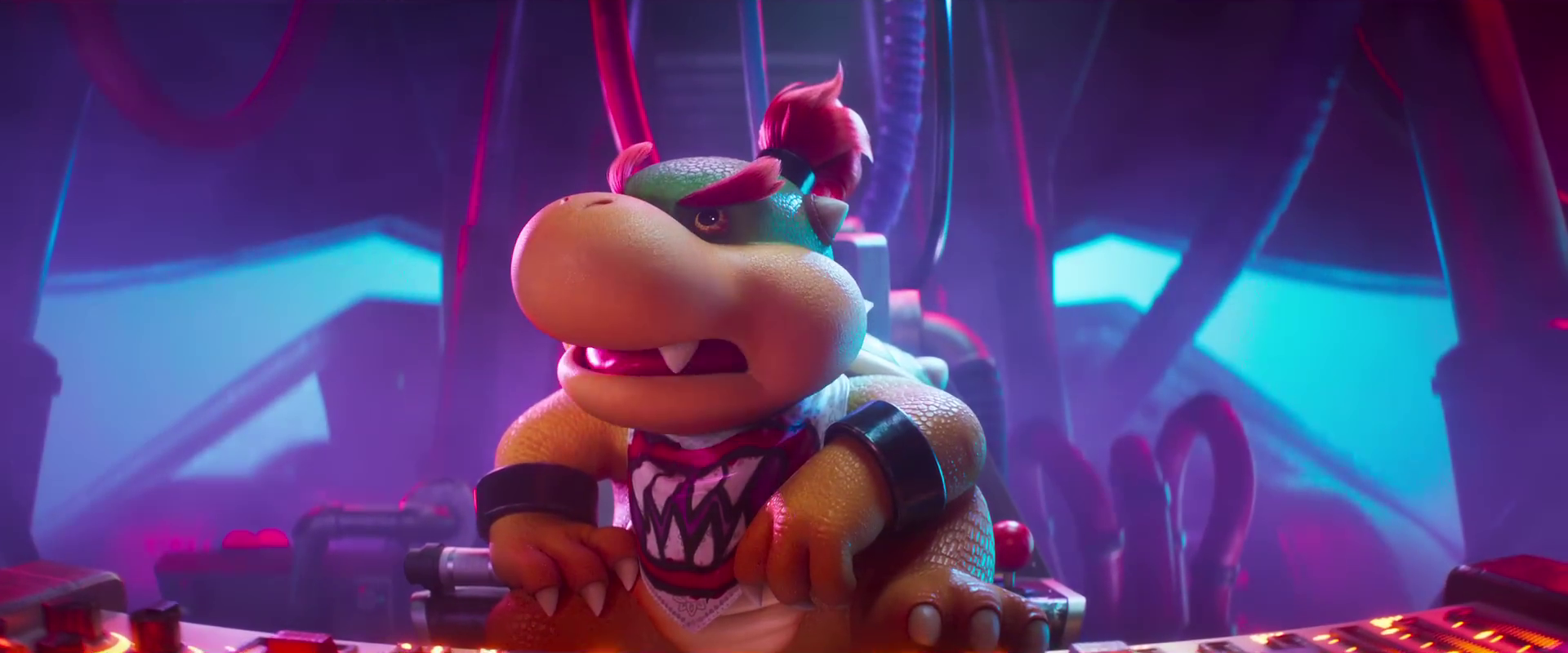 There's a few interesting aspects of Bowser Jr.'s depiction in this movie. The first many noticed is that this is the Bowser Jr. as he appeared in Super Mario Bros. Wonder. When he talks, the scary mouth drawn on his bandana moves to his speech. Speaking of talking, Bowser Jr. is being voiced by Benny Safdie instead of Caety Sagoian as in the video games. This makes Bowser Jr. sound more like a teenager rather than kid-like.