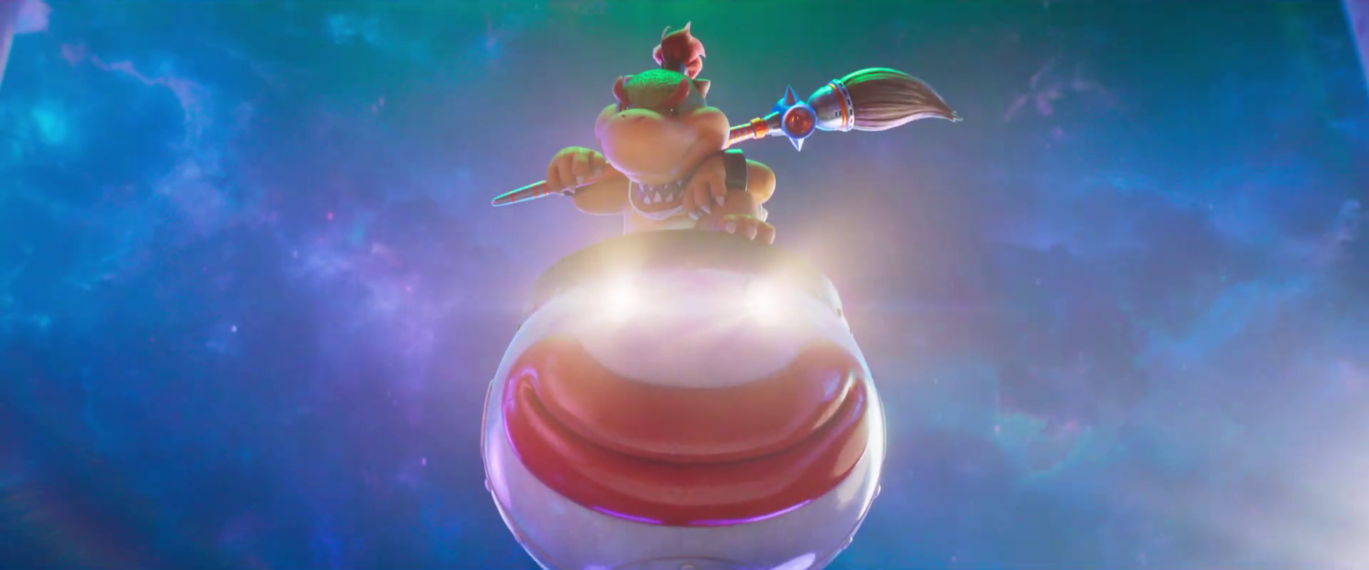 Speaking of Bowser Jr. - the kid sure knows how to make an entrance (much like his father!) Just look at that aura surrounding him as he descends down with his wide grin and a foot on the rim of his Koopa Klown Car! I'm sure the characters might be a bit confused who this mini Bowser that shows up will be, and I honestly hope the movie will explain his origins better than the games do!