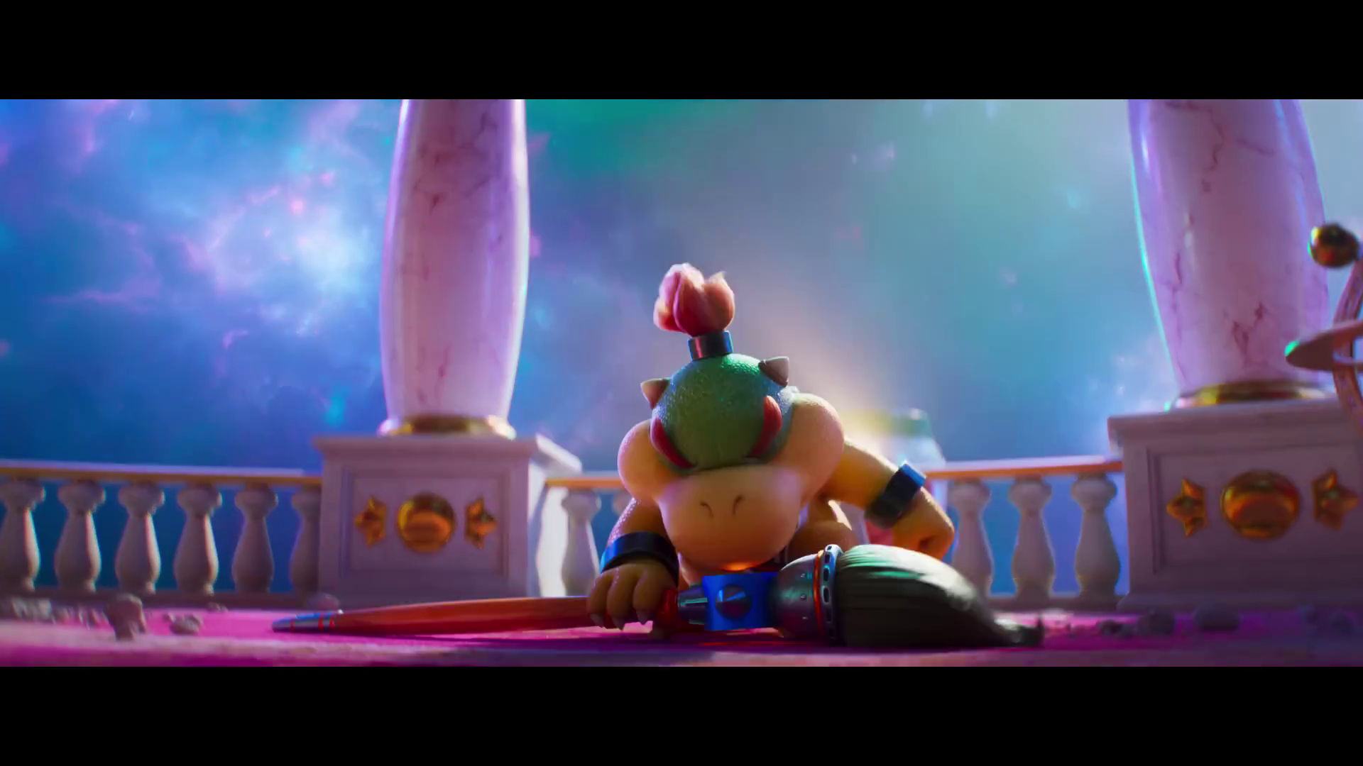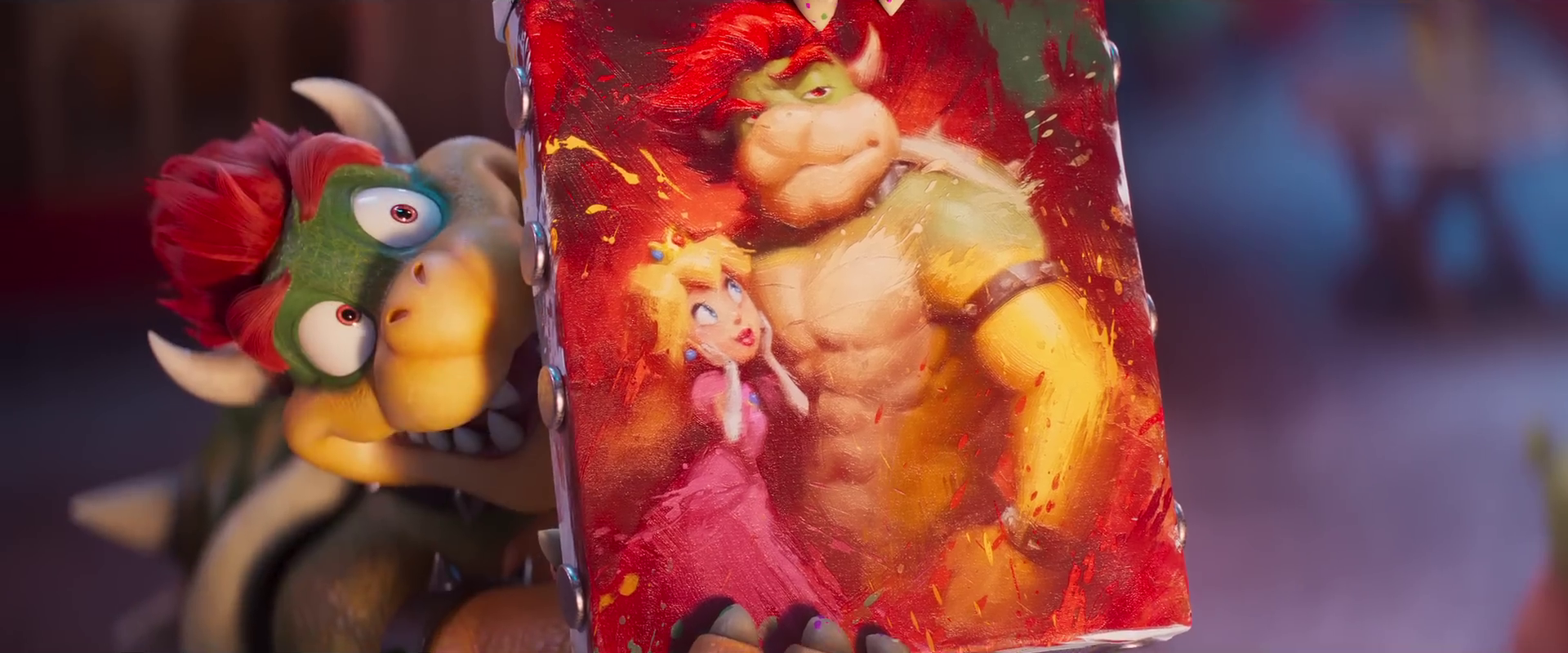 I nearly dropped my aforementioned iPhone laughing at this! Bowser painted himself as a ripped GigaChad while Peach stares up at him with awe as if he's some sort of sculpted Greek God! Bowser appears super excited behind the painting grinning while he awaits approval! Luigi enthusiastically says "love the colors!" while a frowning Mario leans in and carefully mentions "it's trash..." Bowser looks hilariously dejected for a split second, and then rages and destroys his masterpiece on the spot! These movies have had great comedy to them, and this one will no doubt be very entertaining!